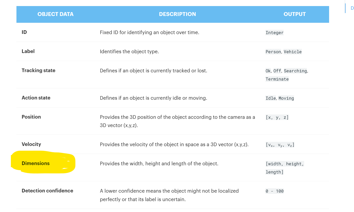 I learned in the introduction to Detection Outputs that we can get information such as dimension. Experimentally, I found that this result is not precise. How do you get the size of this object?