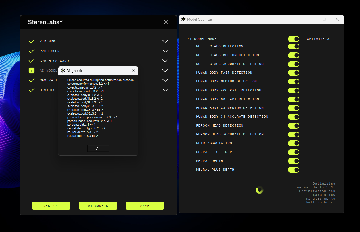 after installing zed sdk5.0.7 win10_11_cuda_12.1_trt8.6 on win 11