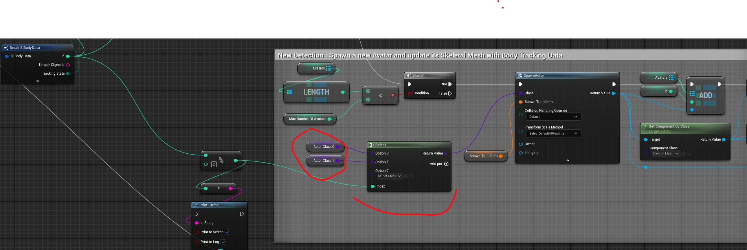 I see that there is a block of nodes called New Detection : Spawn a new Avatar and update its Skeletal Mesh with Body Tracking Data. I am guessing that is the part that creates the 2nd (and 3rd and 4th and so on) avatar. But I have no idea how to use it. I can also see that it recalls ABP_ZED_Manny so I am guessing it should recall another ABP as that one is dedicated to the first mesh and its child. Am I right?