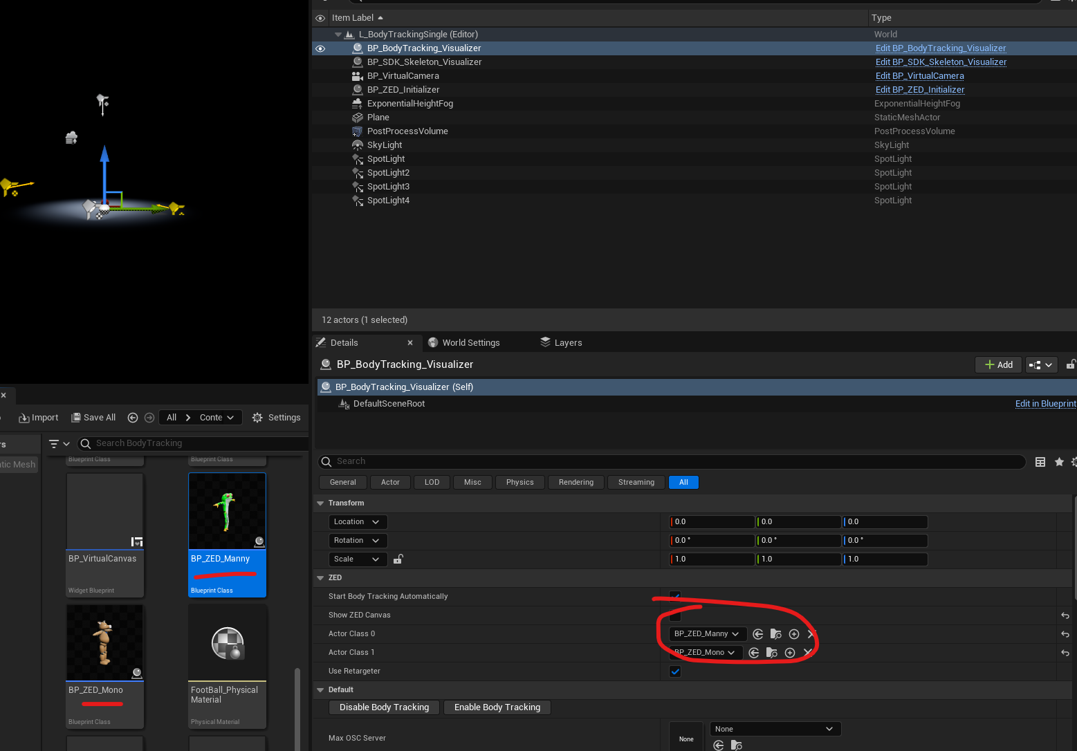 If you want to replicate the crash, just duplicate BP_ZED_Manny and you will create a new file named BP_ZED_Manny1. Drag and drop this newly created file in BP_Body_Tracking_Visualizer in ZED → Actor Class. The avatar will appear in T-pose and than UE will crash in less than a second.