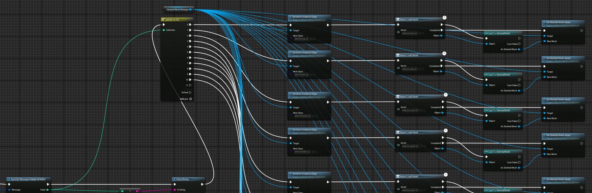 I a bit of a newbie when it comes to Blueprints in UE. And I am trying to figure out how to easily change the avatar while in play mode. I am not referring to the actual interface, but to what blueprint and which part of it I should change in order to switch between 4 avatars that I already prepared (I did the IKRig, Retargeter, Animation Blueprint for each avatar)