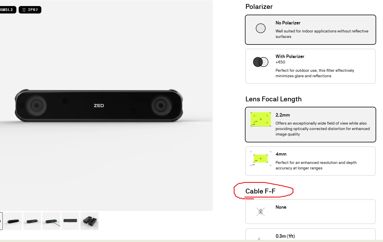 On the product page of the ZED X, we indicate the F-F cables first because many customers already have FAKRA Male connector on their systems and don’t need to use a FAKRA 1-to-4.