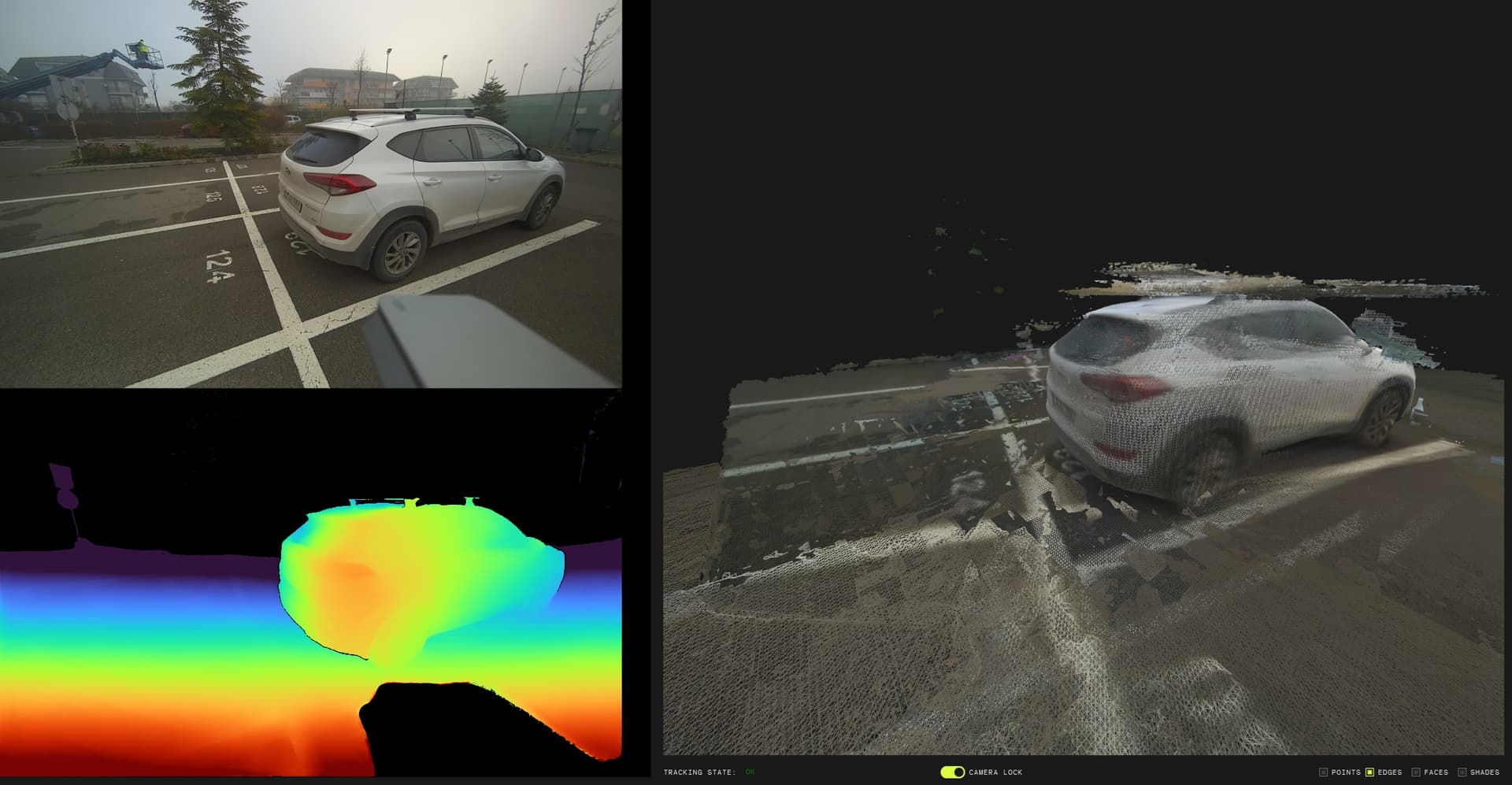 The result is surprising to me as the svo looks flawless, and also the depth calculation is almost perfect frame by frame. Even more, the scene includes clear ground paints(lines, numbers) which I believe should help with the positioning and alignment during reconstruction.