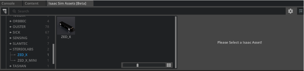 Following the tutorial, I do see the ZED X Camera in Isaac Sim Assets Tab