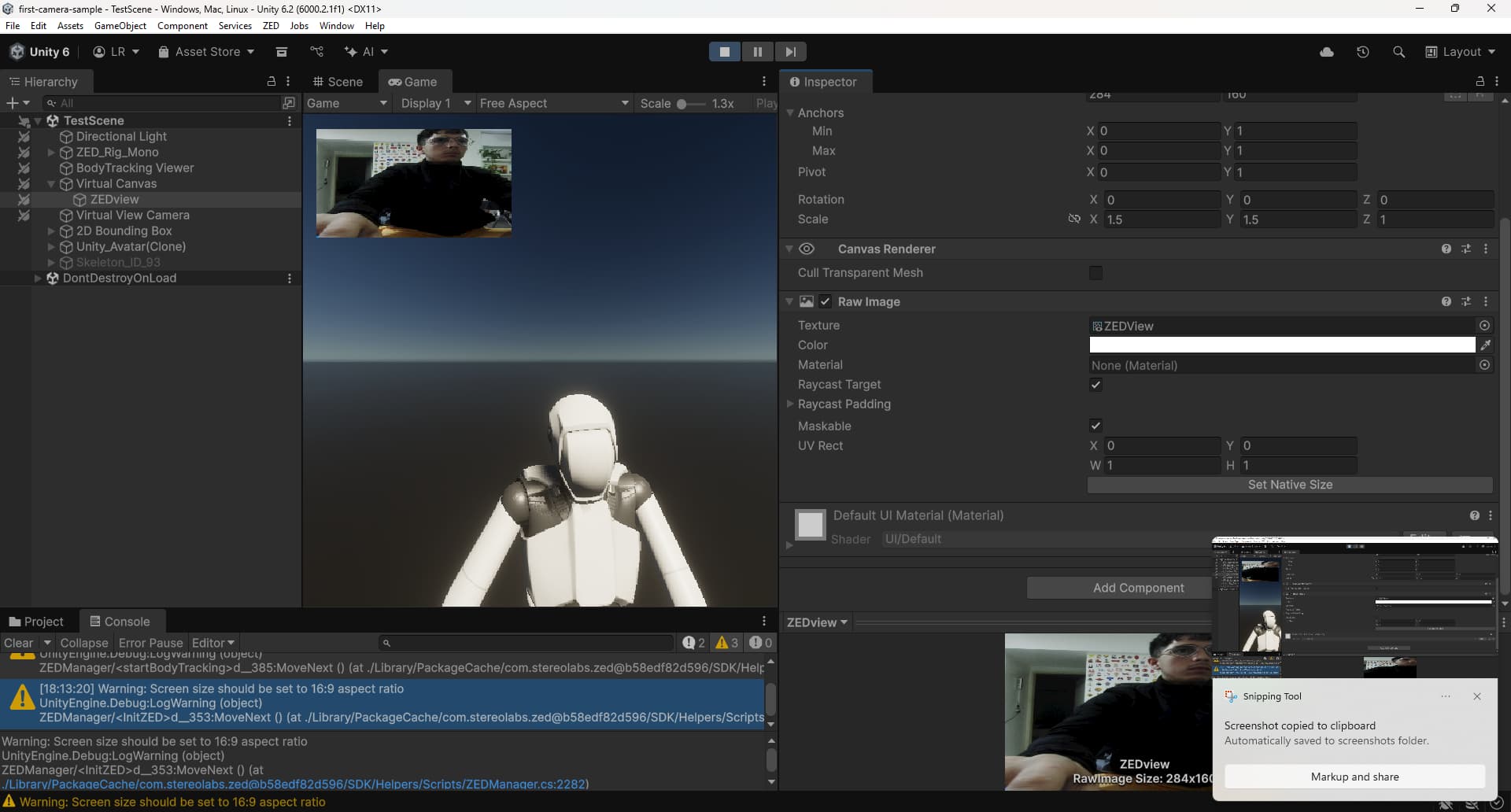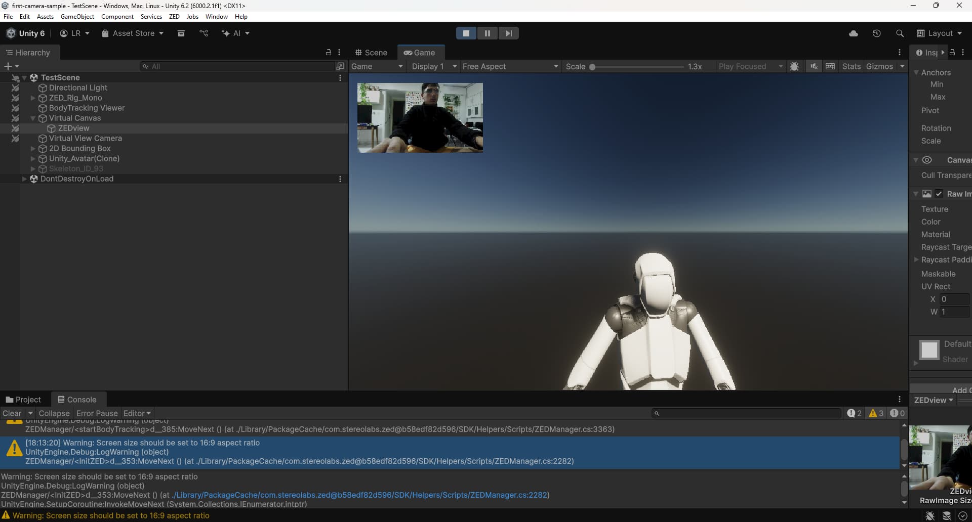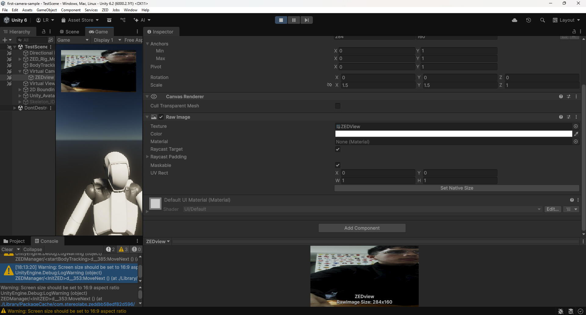 Hi everyone! First of all, I’m new in Unity. I have been working with the ZED 2i camera in unity in the last week, and I have a simple question: it is possible to use the camera in Unity using a screen size different than 16:9? Using the Body Tracking project sample, if I use any aspect ratio