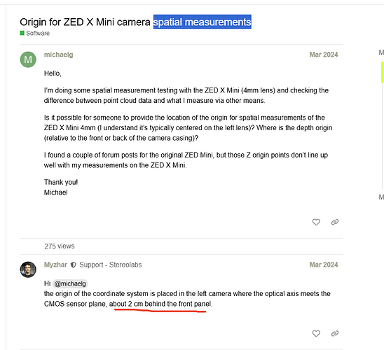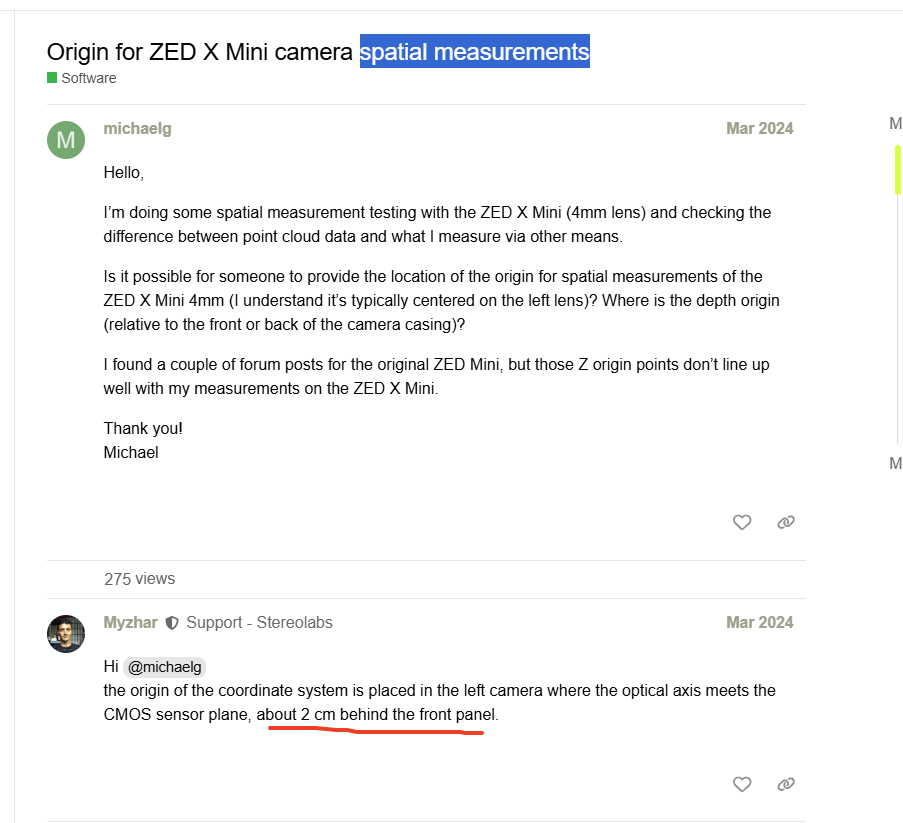 I found a topic in the community, it shows the distance from the optical center to the surface is 2 cm? is it correct?