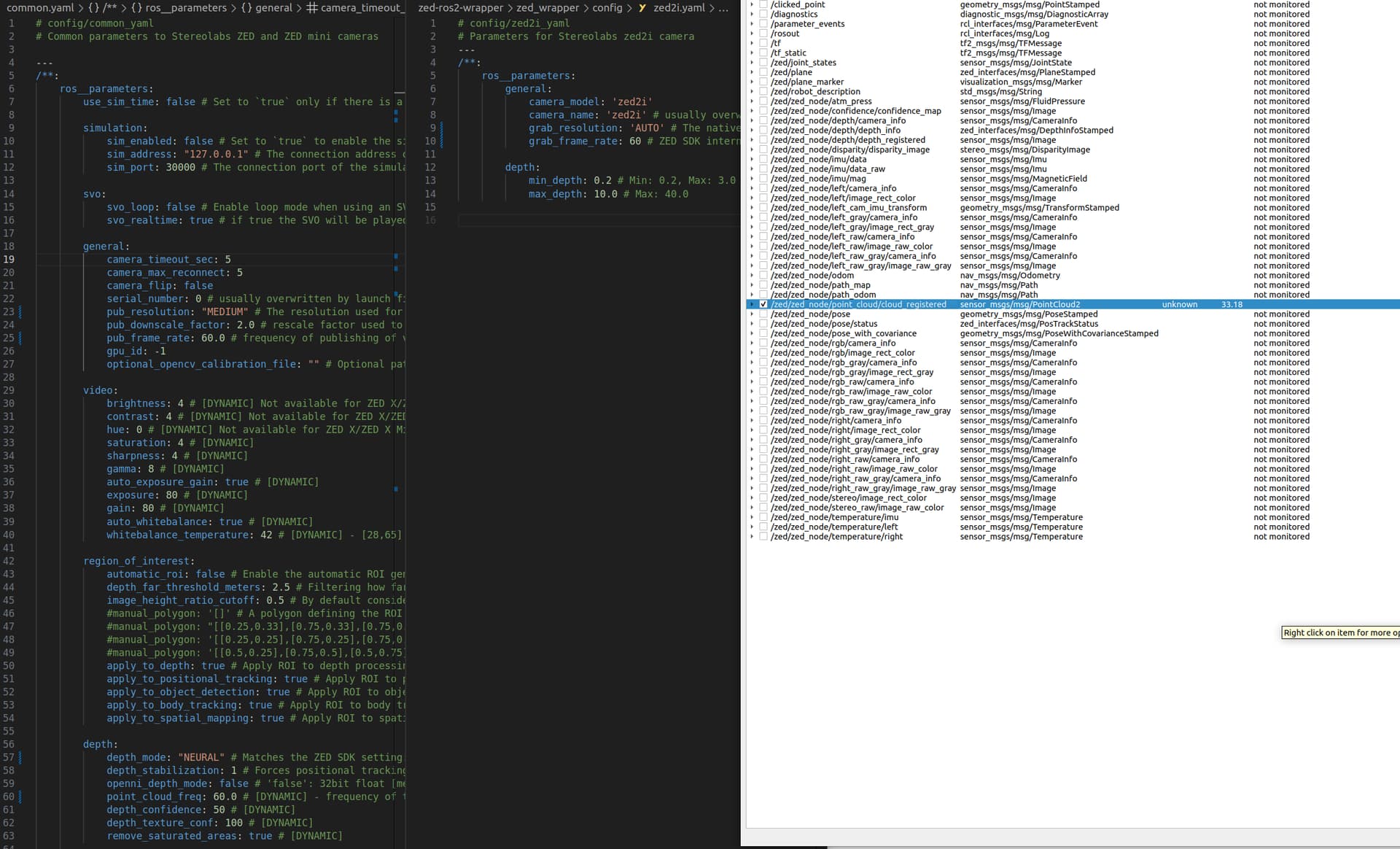 While testing the zed-ros2 wrapper, we tried to publish the images. depth map and point cloud data at 60 Hz by changing the following parameters: