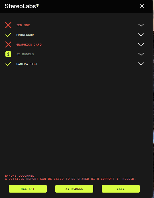 Ive deleted everything, reinstalled zed sdk, got only warning to install CUDA and get this from diagnostic