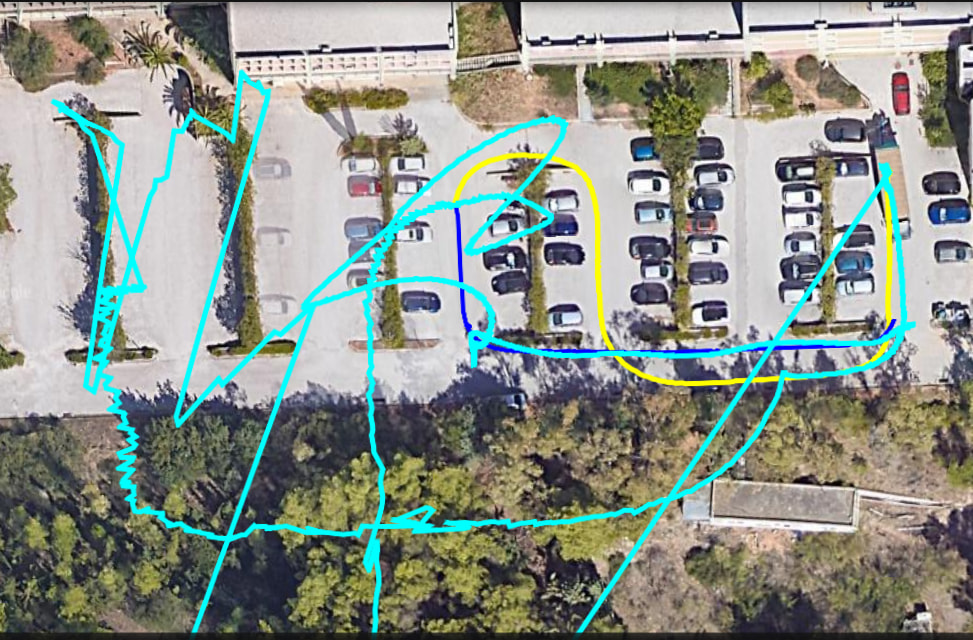 This was the path followed. The yellow line is RTK FIX while the dark blue is 3D DGPS FIX. The run started with RTK and ended in DGPS. The cyan line when it goes off it goes to the coordinates system start (0,0).