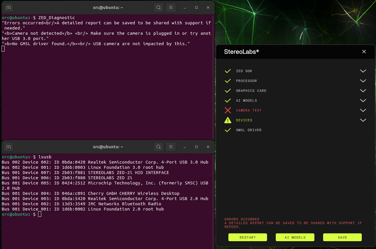 "<b>Camera not detected</b> <br/> Make sure the camera is plugged in or try another USB 3.0 port." |