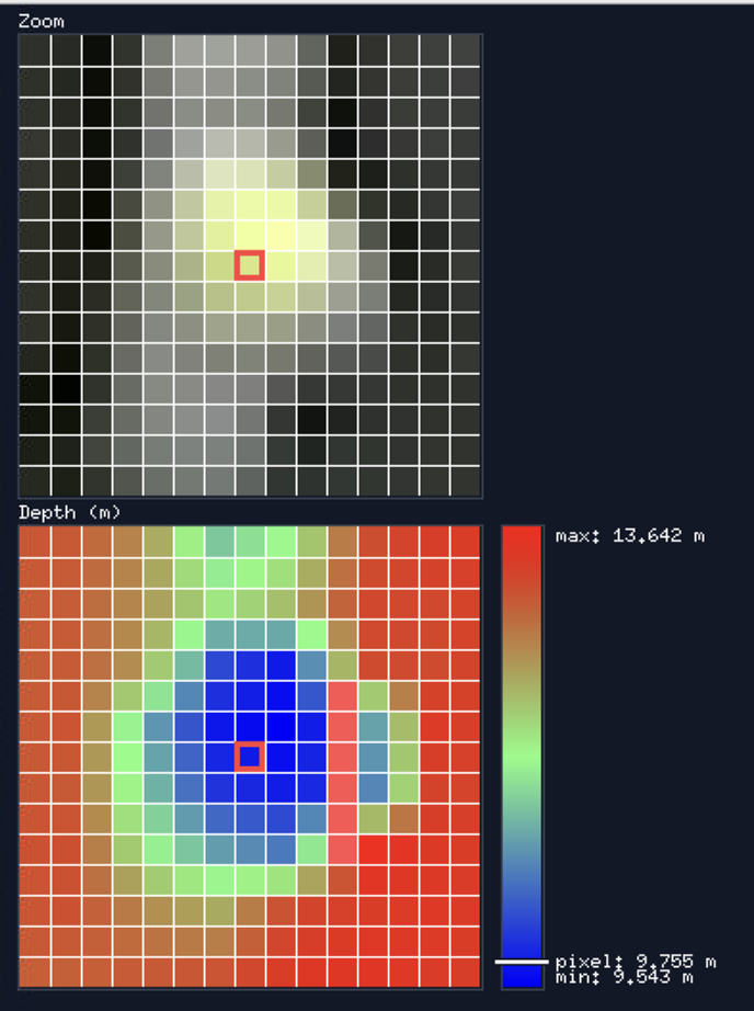 I made a viewer to see the RGB and Depth both zoomed around the cursor