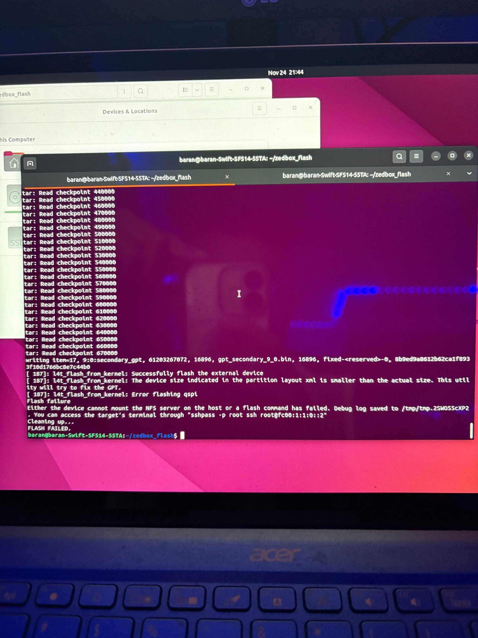 I found the Zedbox was not properly flashed so I went ahead to try again but got this error. I also noticed that the Zedbox went out of recovery mode at some point during the flashing (light on and not showing up on lsusb).