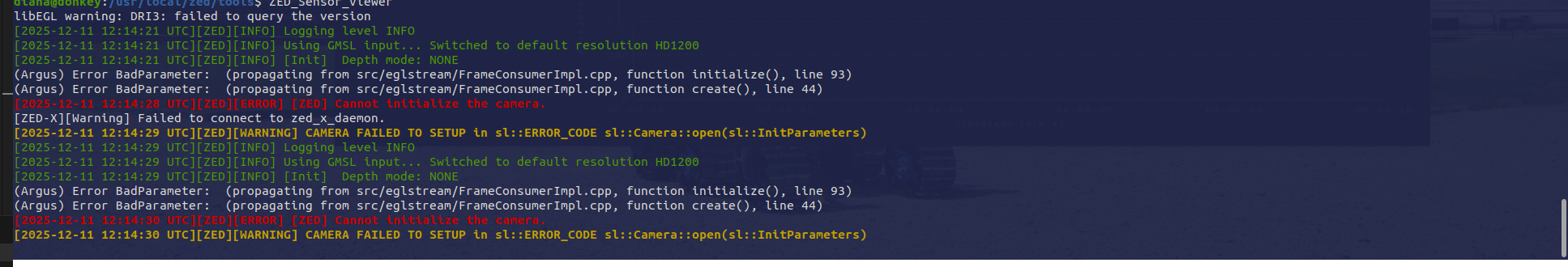 The ZED_Diagnostic -c command is now detecting the 2 zed. But there are still a lot of problems. All of the tools availble in the SDK fail to open the camera. I will attach a screen.