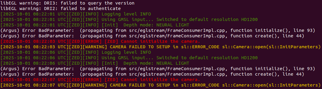(Argus) Error NotSupported: Failed to initialize EGLDisplay (in src/eglutils/EGLUtils.cpp, function getDefaultDisplay(), line 77)